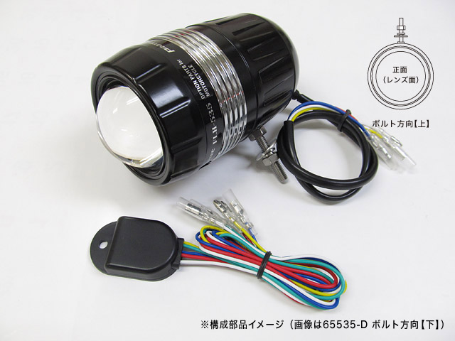 本製品はディマーセンサーと配線の向く方向性に指定がございます。ボルト方向はレンズ面を正面から見て【右】側となります。